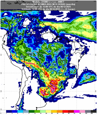 O Instituto Nacional de Meteorologia (Inmet) emitiu um aviso vermelho (grande perigo), com previsão de chuva acima de 60 milímetros (mm) por hora, ventos superiores a 100 km/h e queda de granizo na Região Sul, e outro laranja (perigo), incluindo outros estados.
